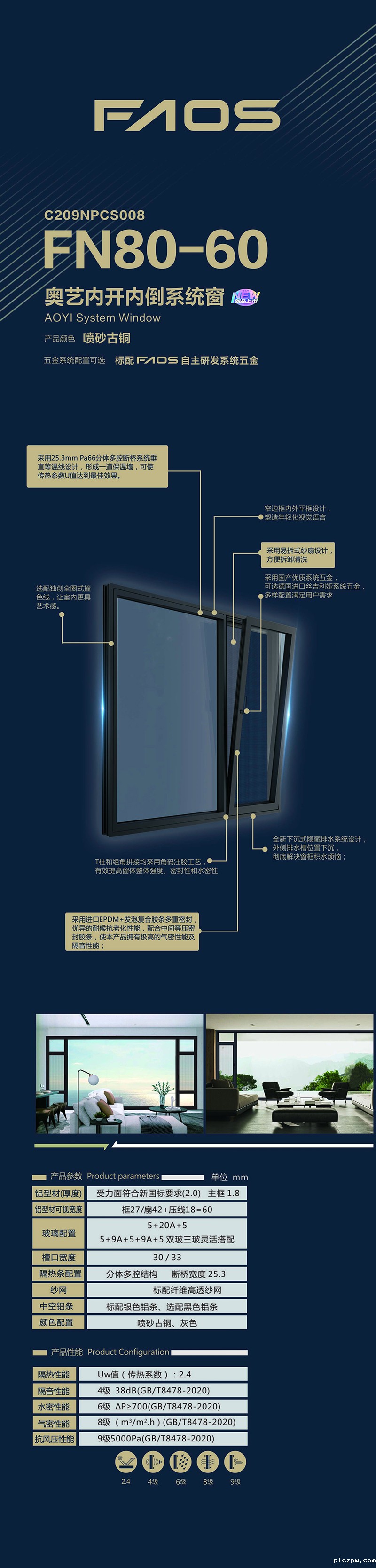 • FN80-60奥艺内开内倒系统窗